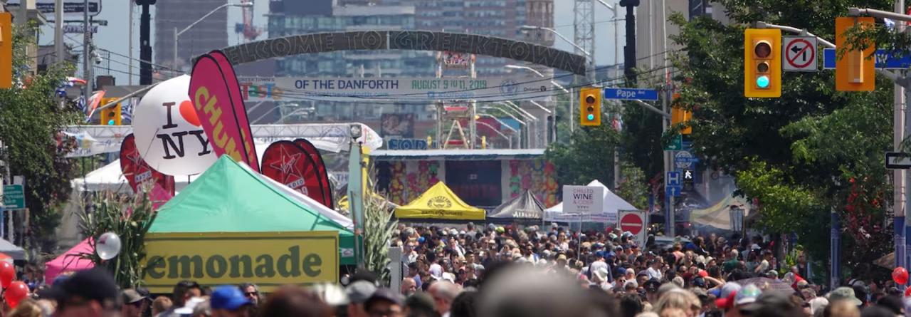 Over nearly two kilometres, Toronto's famous Danforth Avenue is shut down for a street-wide festival celebrating classic and contemporary Greek food — from souvlaki and spanakopita to loukoumades and more.