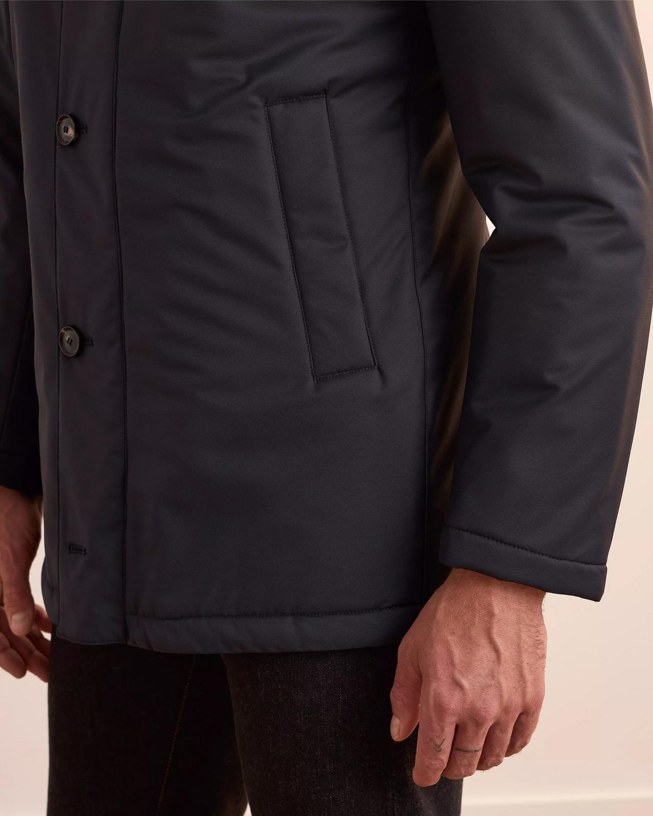 Paul & Shark’s Typhoon Silk and Typhoon Platinum are high-performance fabrics engineered to be windproof, water-resistant, and breathable, enhancing durability and protection for its range of elevated outerwear.
