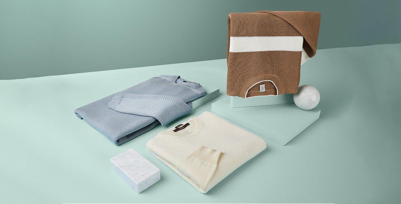 When choosing knitwear for yourself, the value of purchasing quality pieces can’t be overstated. We strongly suggest gravitating to quality, long-lasting fabrics like cashmere and high-quality wool. These knits from Eleventy, PATRICK ASSARAF, Windsor, and BOSS are great examples: