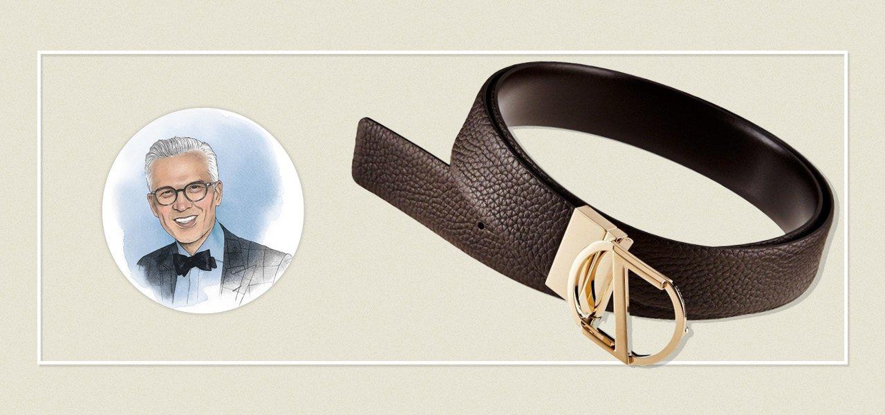 “Italian-made with a dark brown pebbled leather, this accessory does a lot more for your waistline than simply hold your pants up — it’s got a rich visual and tactile depth that really brings the bold logo buckle to the fore. No matter what you wear this with, it’s a belt you’ll definitely want to tuck your shirt in for.”