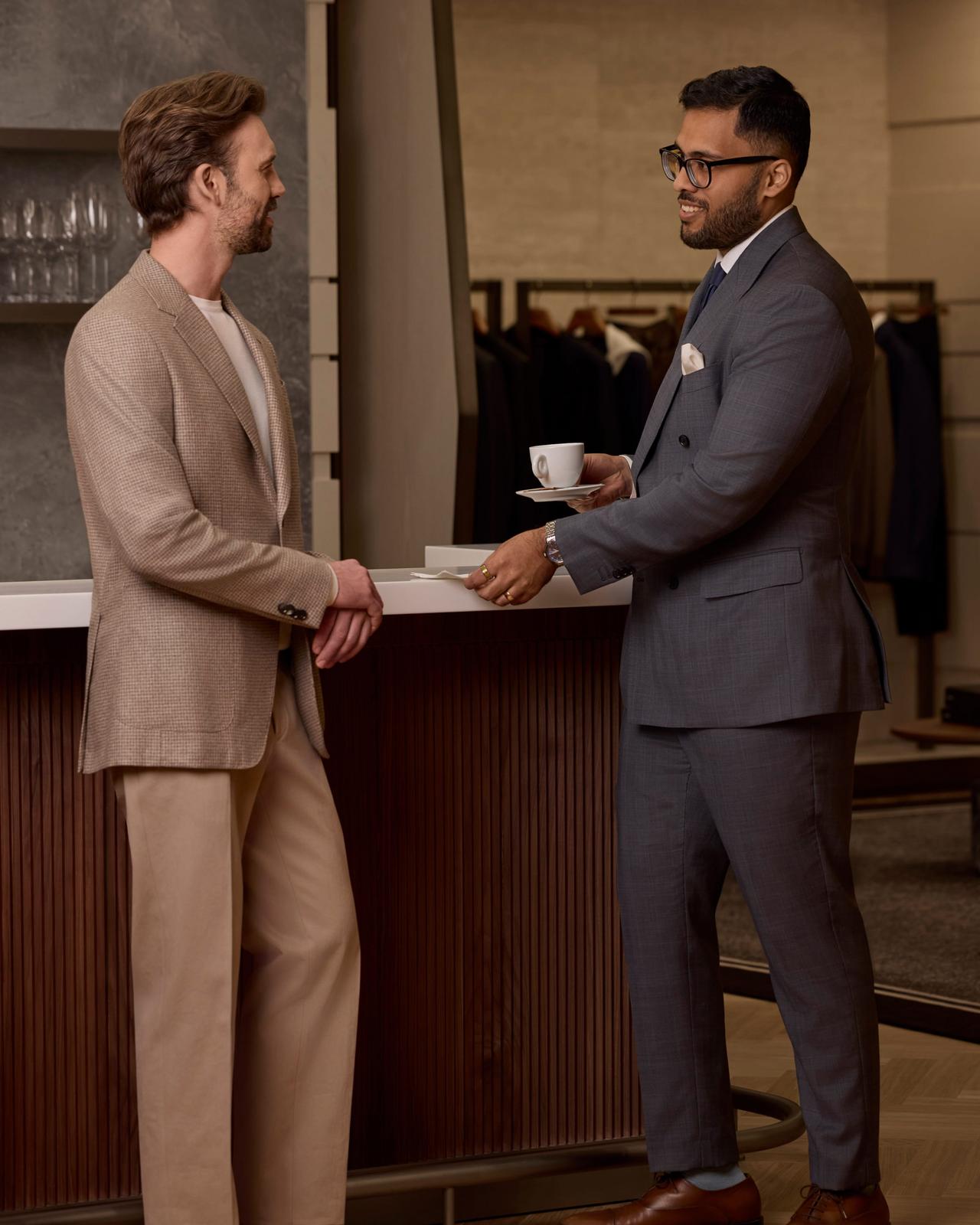 The custom-made journey begins with an in-store consultation alongside one of our expert Style Advisors or Harold brand specialists. Together, you’ll discuss how the garment fits into your lifestyle and wardrobe, its intended use, and what you’re truly looking for in the finished piece.
