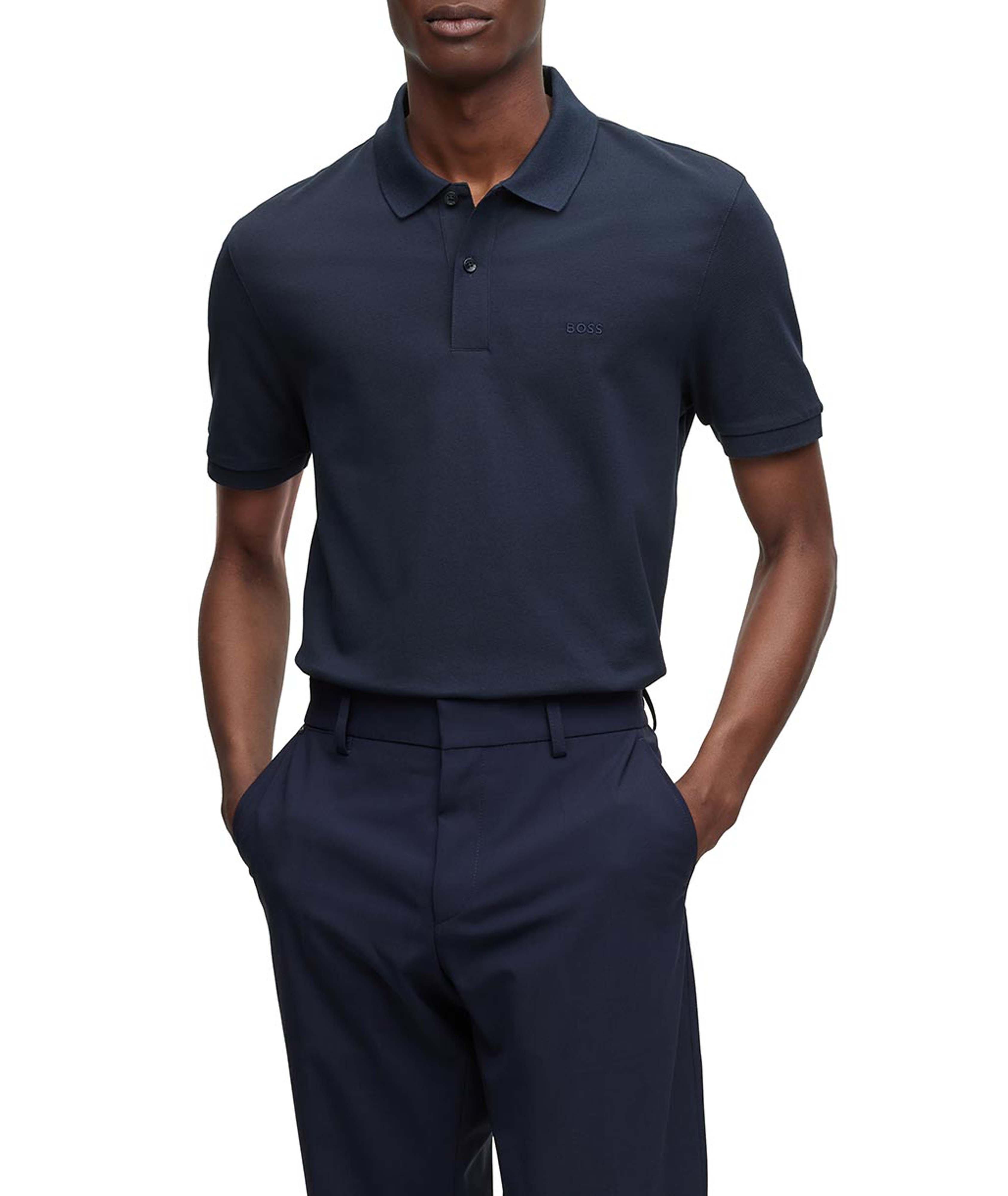 - Amplify the boss within you with this sporty polo shirt by BOSS Menswear. Featuring signature tape at the inner collar, this polo shirt is crafted in soft piqué fabric and embroidered with a tonal BOSS logo at the left chest. Pair it with jeans and sneakers for an off-duty BOSS aesthetic.