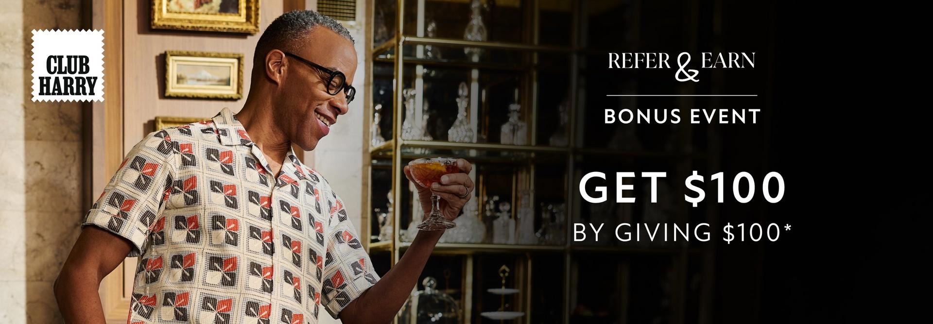 CLUB HARRY Members earn 10,000 Bonus Points ($100 in redeemable value) for every successful referral.Full terms here
