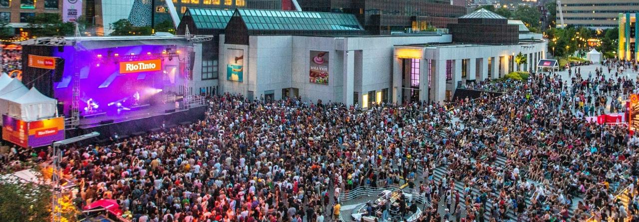 Organisé dans le Quartier des Spectacles et sur la Place des Festivals, l'événement comprend à la fois des spectacles payants en salle et des concerts gratuits en plein air sur plusieurs scènes.