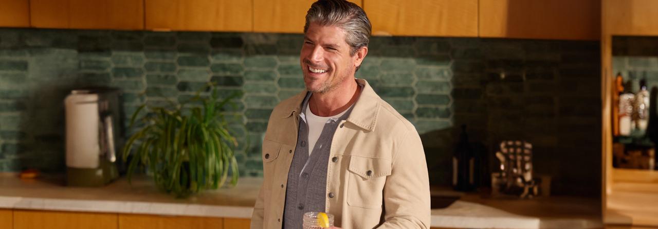 Commencez par un tricot élégant, puis superposez un pull quart-zippé ou un cardigan avant de compléter le look avec un veston chic ou un veston sport. En bas, optez pour un jean ou un pantalon Chino foncé et des chaussures cuir poli ou des bottes.