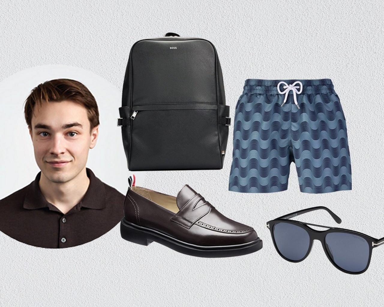 « J’ai toujours de la difficulté à choisir mes préférés pour toute une saison, mais ultimement, ce sont les détails qui comptent vraiment pour moi. Par exemple, le tirant tricolore sur ce flâneur de Thom Browne, le motif minutieux sur ce short de Frescobol Carioca, et la conception supérieure de ces lunettes de soleil de TOM FORD, dont la qualité est flagrante. »