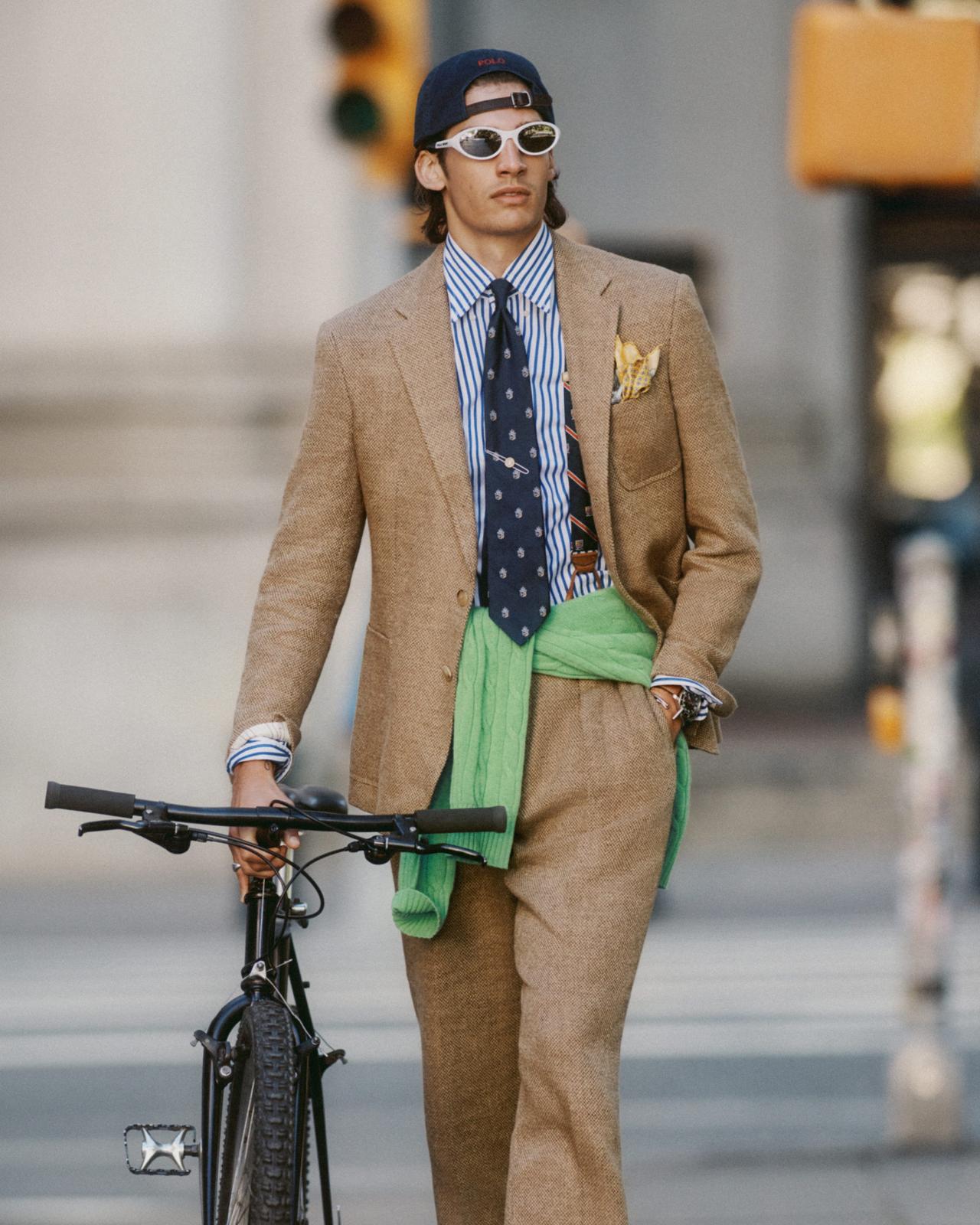 Parfois, une astuce stylistique emblématique de Ralph Lauren consiste à prendre un incontournable de la garde-robe et à le porter de manière non conventionnelle, comme enfiler un pull sans le passer par-dessus la tête.