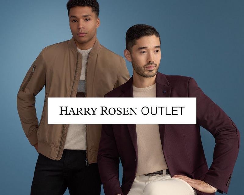 Les magasins Harry Rosen Outlet sont présents dans plusieurs endroits à travers le Canada, où nos clients peuvent profiter de réductions exceptionnelles et d’offres spéciales sur des vêtements pour hommes de marques de créateurs, les mêmes que celles proposées dans nos magasins Harry Rosen traditionnels.